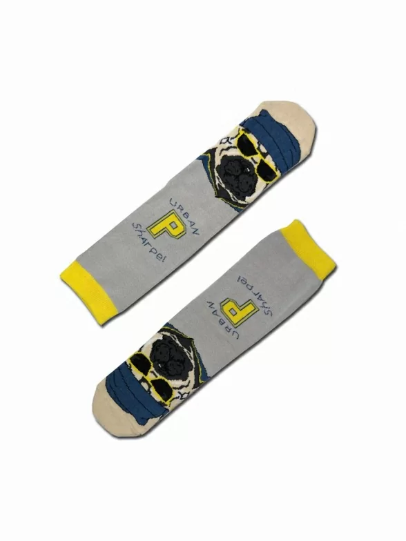 Этот шарпей только с виду очень грозный и опасный, а на самом деле он очень веселый, добродушный и уютный. Ведь он стал частью очень красивых и качественных носков.
