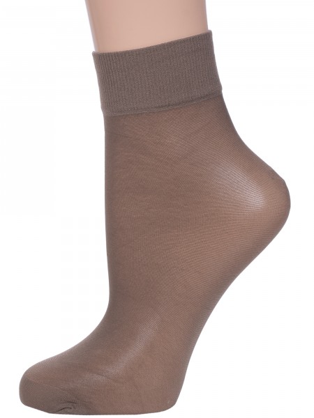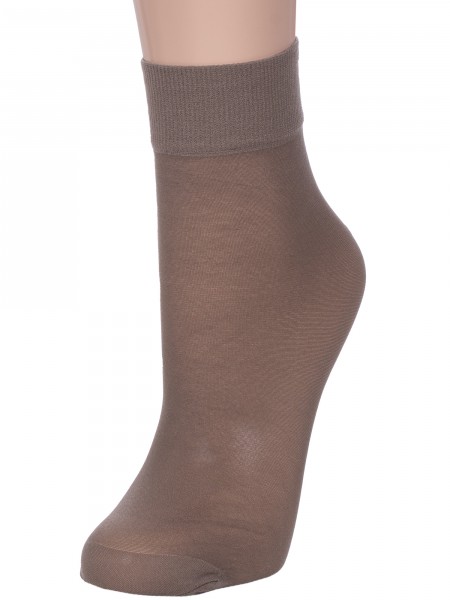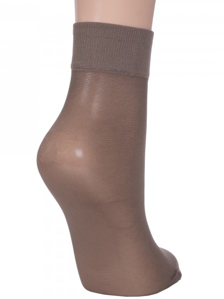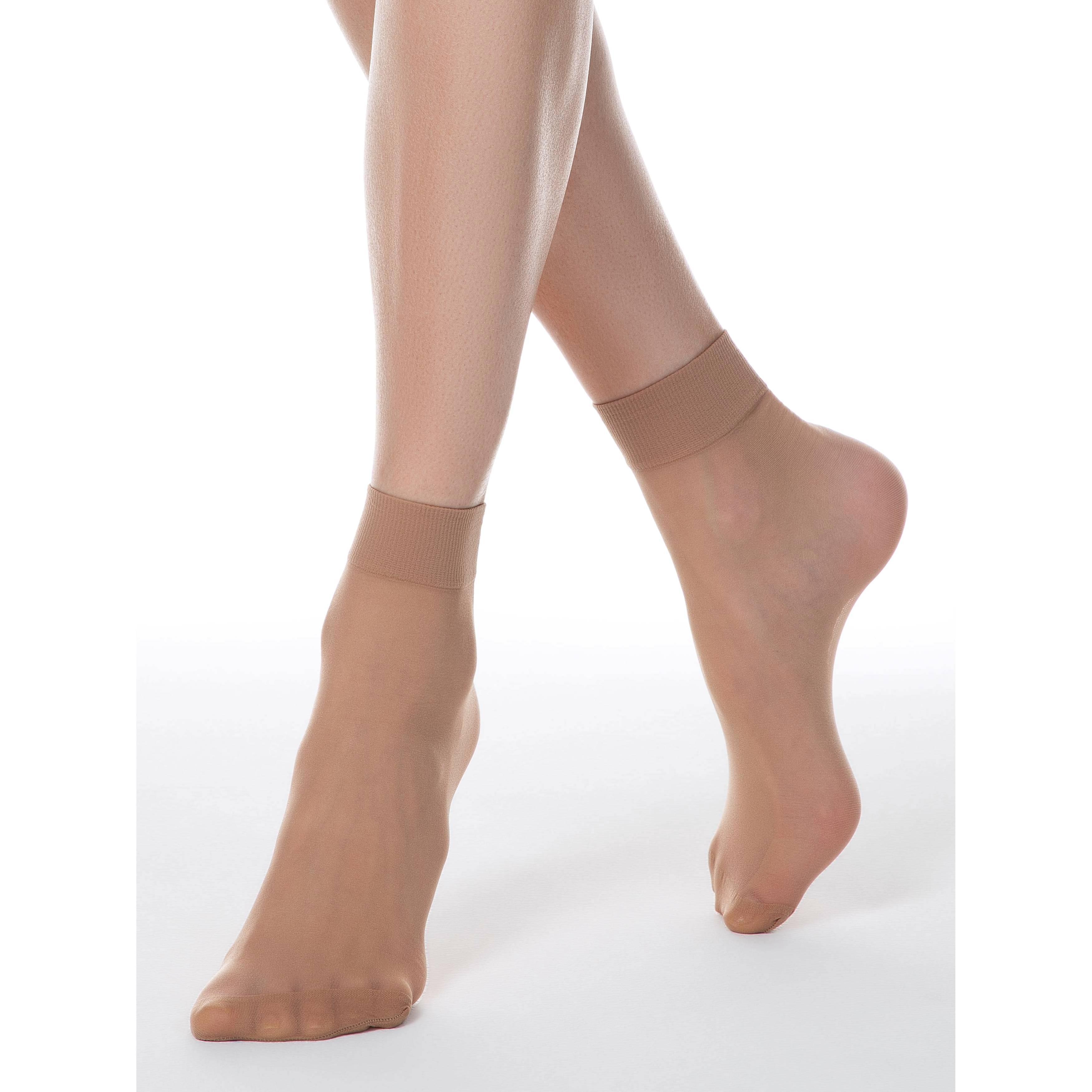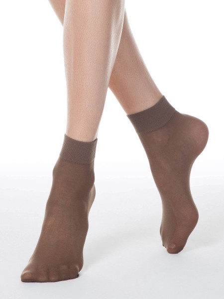 Укороченная модель плотностью 20 den без отдельно вывязанной пятки, с широким и уплотненным двойным бортом (манжетом резинки) и обычным швом на укрепленном мыске. Изготовлены в Беларуси из гладкого синтетического полотна на основе 87% полиамида с добавлением 13% эластана, благодаря чему изделие износостойкое и хорошо тянется.