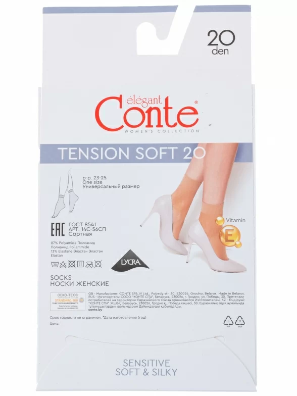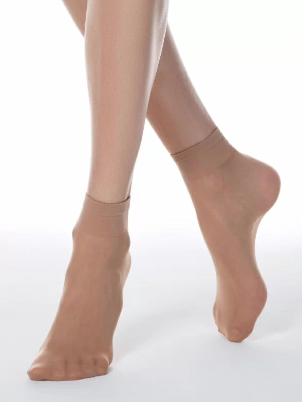 Летние укороченные женские носки, цвет телесный, капроновые, классические, шов обычный (не бесшовные), принт (рисунок): однотонный, без рисунков/узоров, состав: 87% полиамид, 13% эластан, арт. 14С-56СП/Tension soft 20Н. Производитель «Conte, Беларусь» под брендом «Conte».
