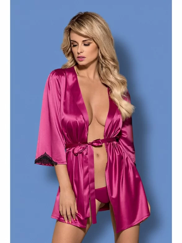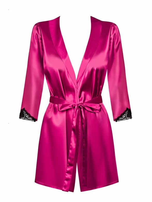 Женский пеньюар Obsessive, Obs_Satinia robe Pink, ФУКСИЯ