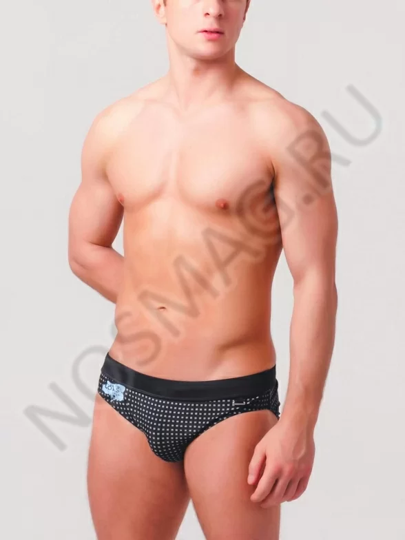 Мужские купальные плавки в мелкую клетку. Модель с удобной внешней резинкой и шнурком с внутренней стороны.