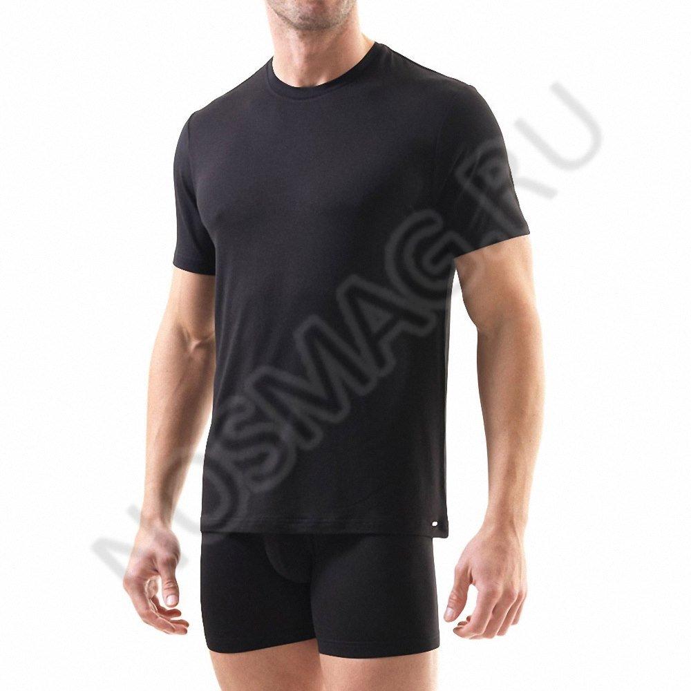 Мягкая мужская футболка, сделанная из модала. Этот новый материал не мнётся и очень быстро высыхает. Майка отлично садится по фигуре и приятна к телу. Отличительная особенность модели - завышенный вырез горловины.