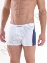 Мужские трусы-боксеры с контрастными боковыми вставками и акцентирующим кантом. Скроены без боковых швов и имеют двойную переднюю деталь.