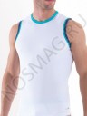 Спортивная мужская майка фасона танг-топ. Модель имеет высокий вырез горловины и украшена акцентирующим кантом по линиям выреза и бретелей. Модель прилегающего силуэта.