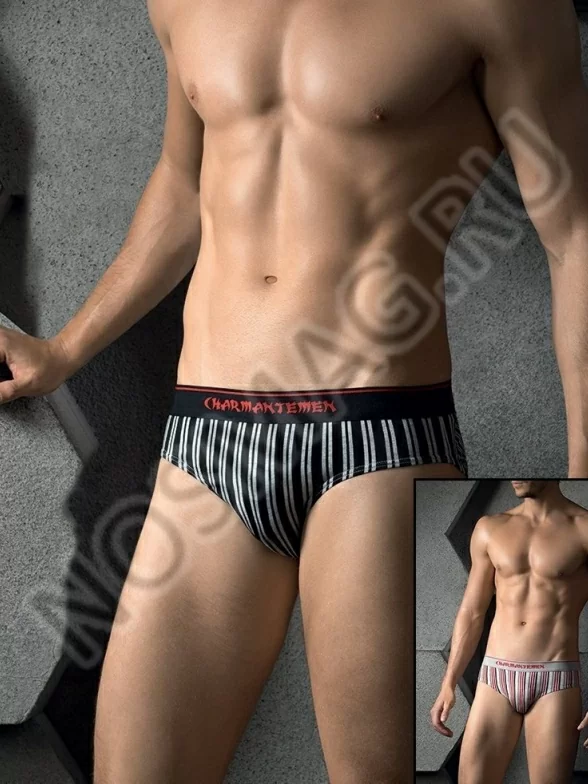 Облегающие мужские трусы с широким плетеным поясом и принтом в вертикальную полоску, с анатомическим рельефным кроем.
