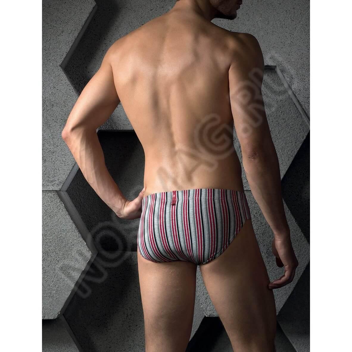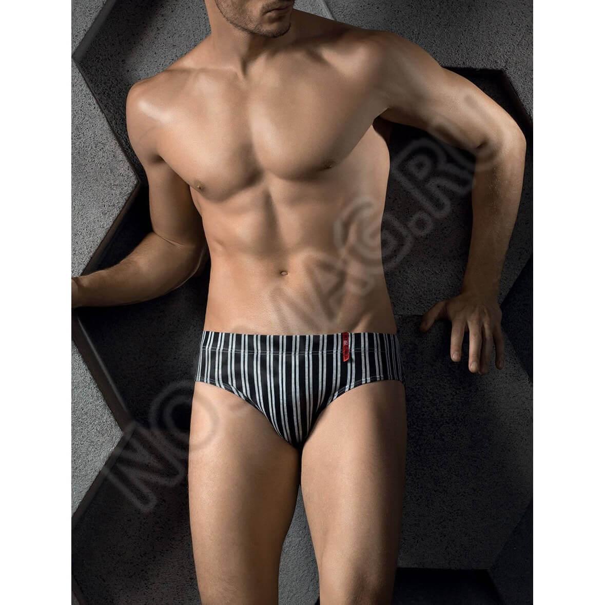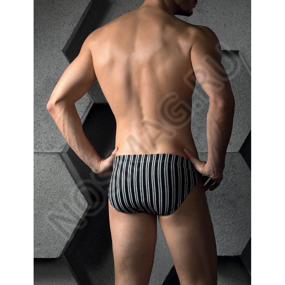 Облегающие мужские трусы с широким поясом запакованного типа и принтом в вертикальную полоску, с анатомическим рельефным кроем.