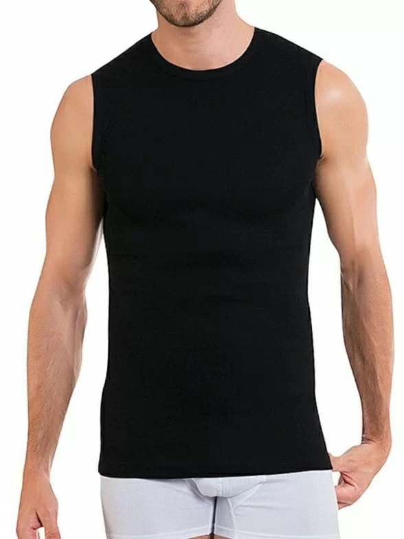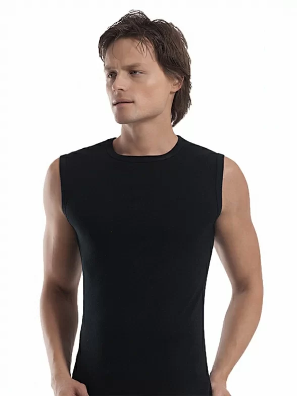 Мужская хлопковая майка с широкими бретелями сделана из мягкого хлопка. Модель от турецкого производителя Oztas дополнена квадратным вырезом горловины.