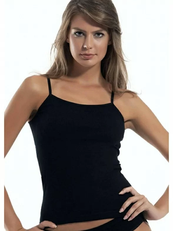 Женский топ облегающего силуэта на ультратонких бретелях. Он изготовлен из высококачественного мягкого хлопка и отличается высокоточной обработкой краев.