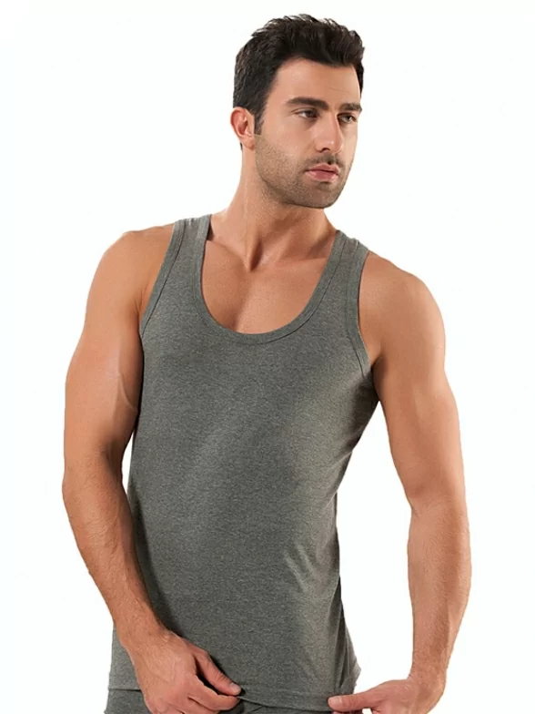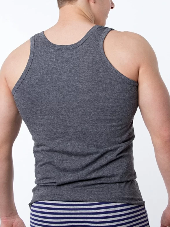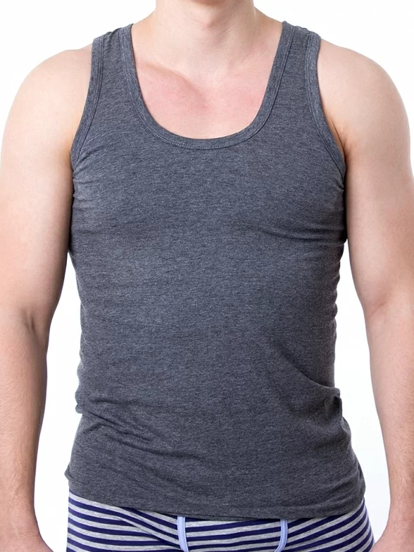Удобная мужская майка классического фасона из хлопка. Модель свободно прилегающего силуэта, выполненная в модной меланжевой расцветке.