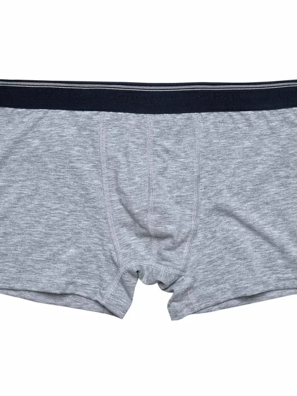 Мужские трусы однотонные светло-серого цвета с широкой черной резинкой.