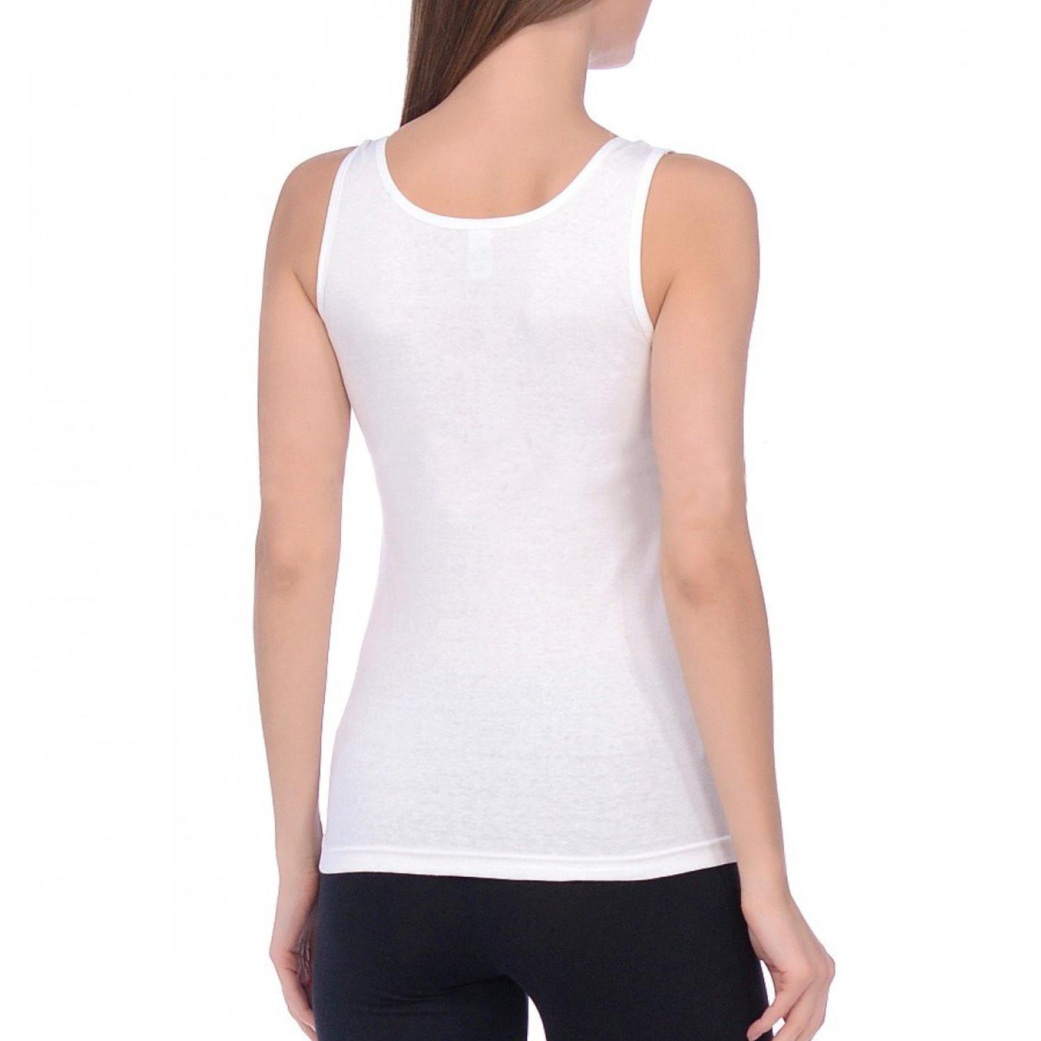 Классическая женская майка свободно облегающего силуэта. Модель на узких бретелях с глубоким круглым вырезом.