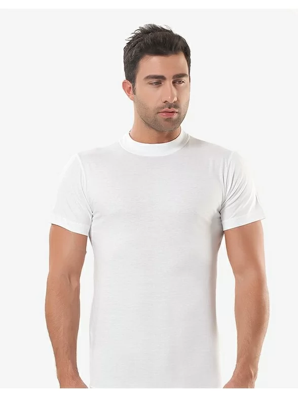 Однотонная мужская футболка свободного фасона с высоким вырезом горловины с плотной обработкой. Модель изготовлена из приятного к телу хлопка.