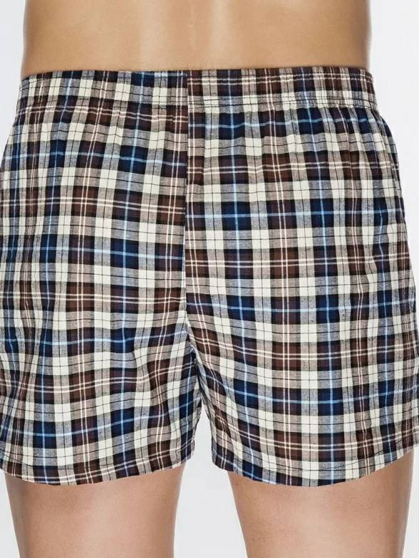 Текстильные боксеры свободного кроя из хлопка с внутренней резинкой и небольшими разрезами по бокам.
