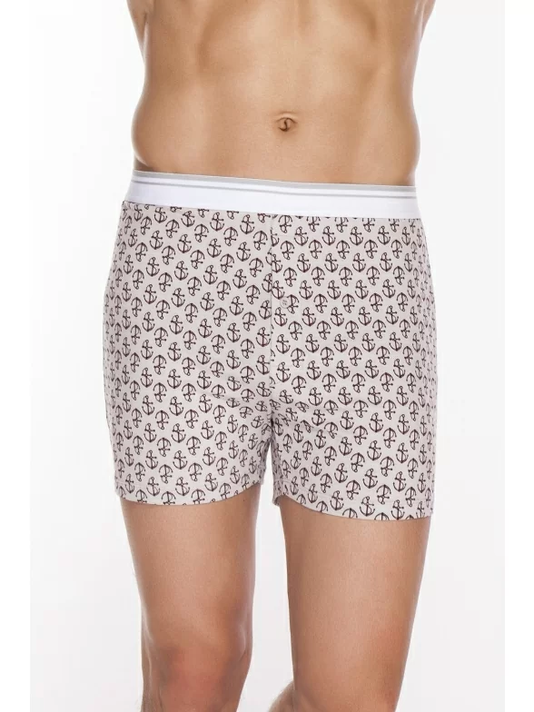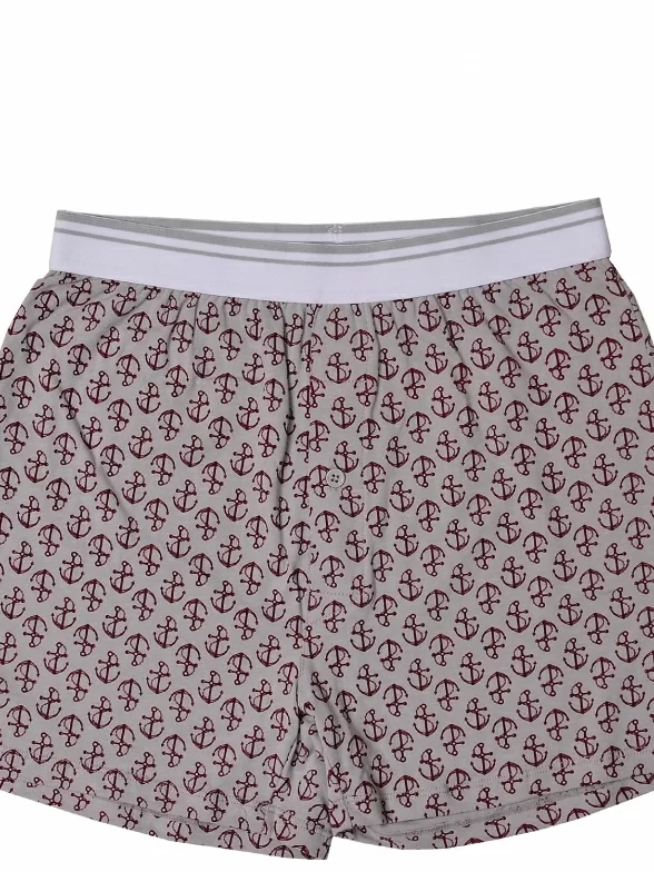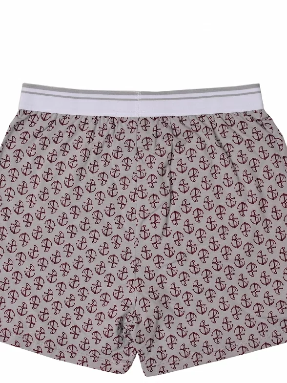 Удобные хлопковые трусы-шорты для мужчин. Материал мягкий, цвет серый. Подходят для ежедневного использования. Резинка удобная и плотная, не перетягивает кожу. Отличительная особенность - принт с морской тематикой.
