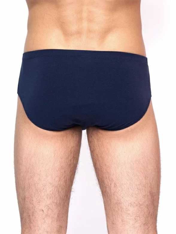 Удобные хлопковые бесшовные трусы-плавки для мужчин. Материал мягкий, цвет темно-синий, однотонный. Подходят для ежедневного использования. Широкая резинка удобная и плотная, не перетягивает кожу. На поясе имеется логотип бренда изделия.