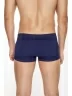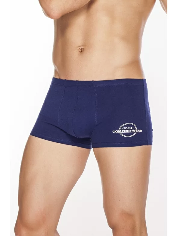 Удобные хлопковые трусы-шорты для мужчин. Материал мягкий, цвет синий. Подходят для ежедневного использования. Резинка удобная и плотная, не перетягивает кожу. Имеется небольшой принт.