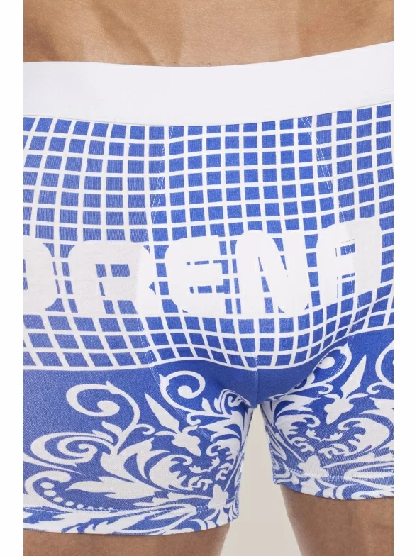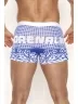 Удобные хлопковые трусы-шорты для мужчин. Материал мягкий, цвет синий. Подходят для ежедневного использования. Резинка удобная и плотная, не перетягивает кожу. Отличительная особенность - необычный принт.