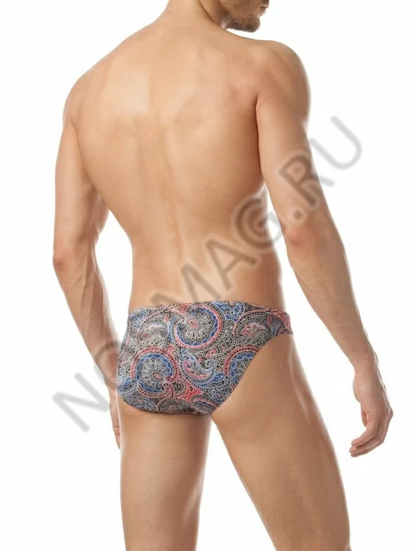 Мужские плавки низкой посадки, принтованные восточным орнаментом и с потайным шнурком.