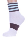 Круглогодичные укороченные детские носки, цвет многоцветные (мультиколор)-белый, спортивные, повседневные, шов обычный (не бесшовные), принт (рисунок): полоски, с узором, состав: 88% хлопок, 10% полиамид, 2% эластан, арт. U-3R4. Производитель «ХОХ» Россия под брендом «Хох».