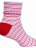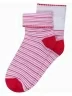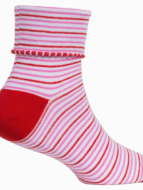 Круглогодичные укороченные детские носки, цвет красный, повседневные, с отворотом, возможно бесшовные, принт (рисунок): полоски, контрастные пятка / мысок / резинка, с узором, состав: 90% хлопок, 7% полиамид, 3% эластан (лайкра), арт. П4. Производитель «ИП Мурзаков В.А., Ставропольский край, Россия» под брендом «Lorenzline».