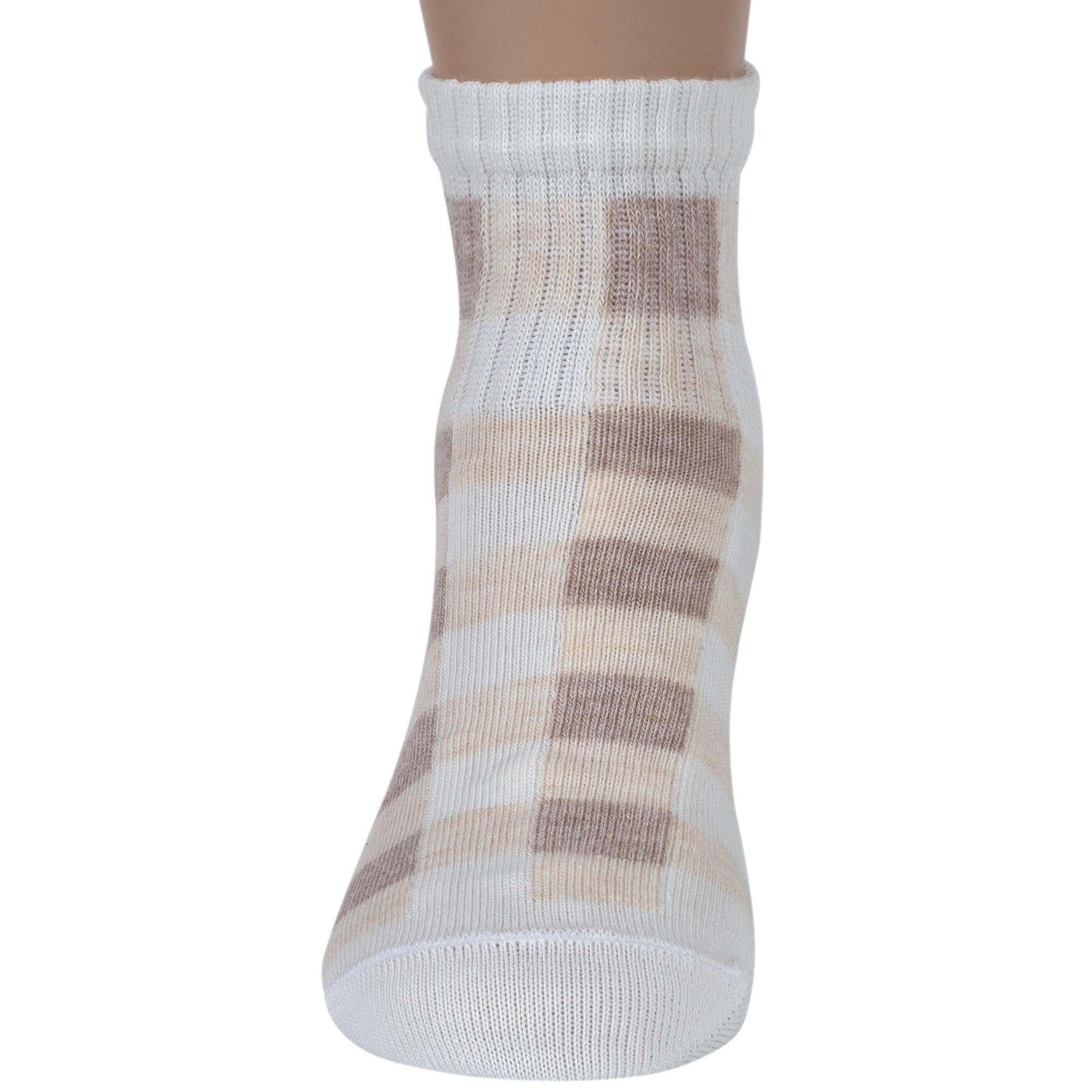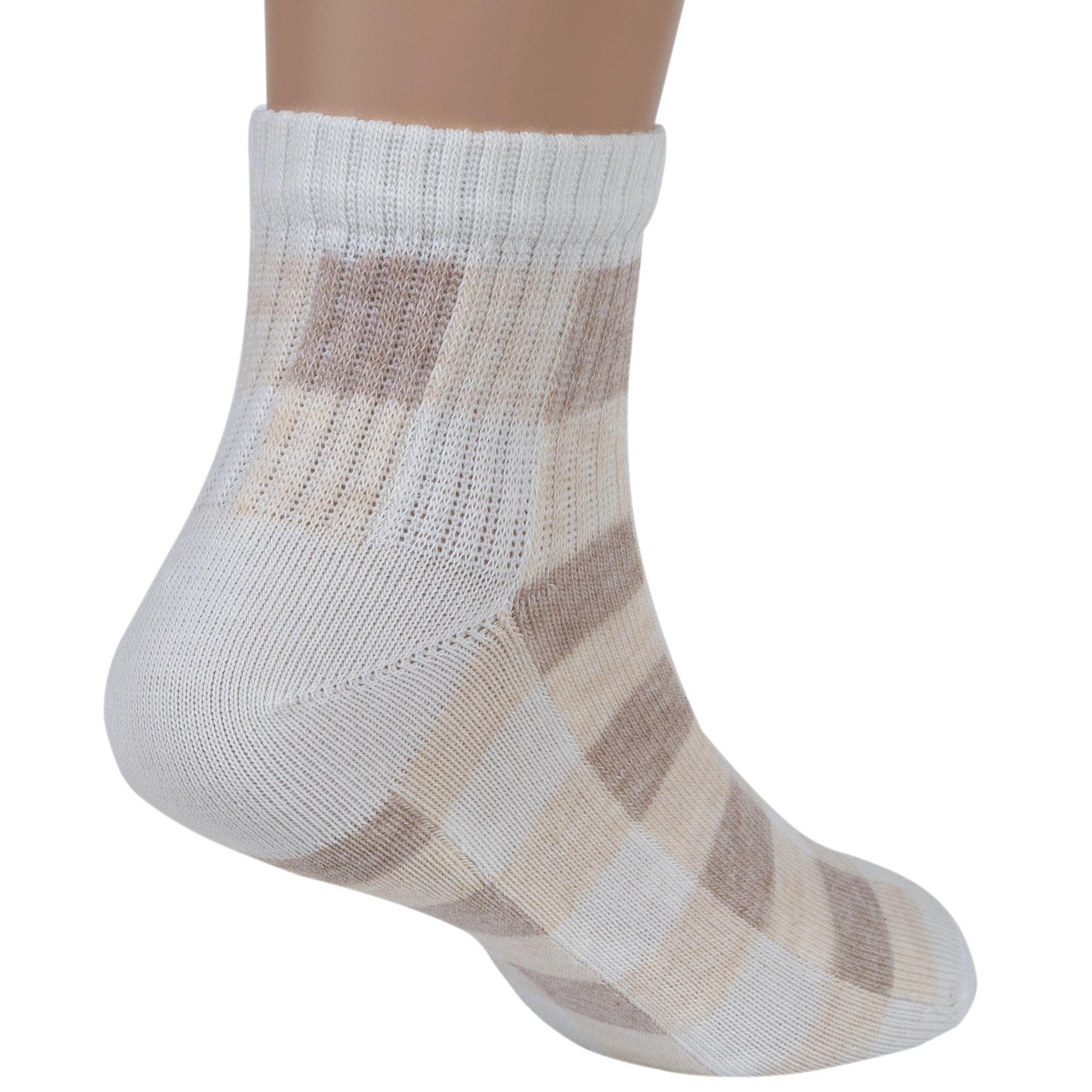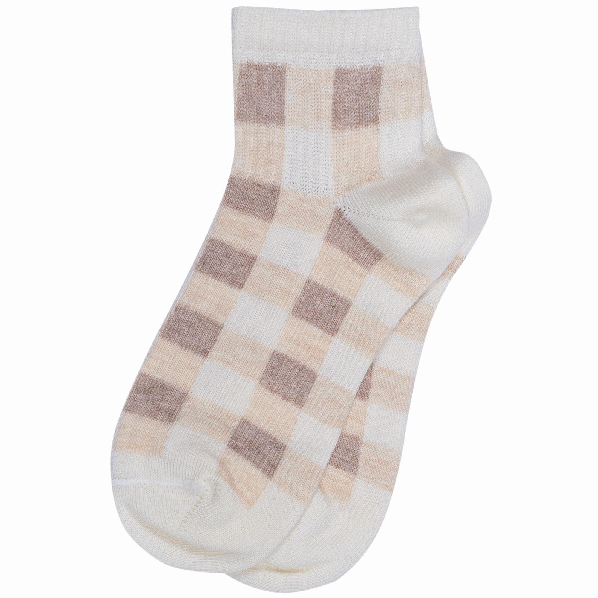 Круглогодичные укороченные детские носки, цвет кремовый-бежевый, повседневные, шов обычный (не бесшовные), принт (рисунок): клетка, с узором, состав: 90% хлопок, 7% полиамид, 3% эластан (лайкра), арт. П35. Производитель «ИП Мурзаков В.А., Ставропольский край, Россия» под брендом «Lorenzline».
