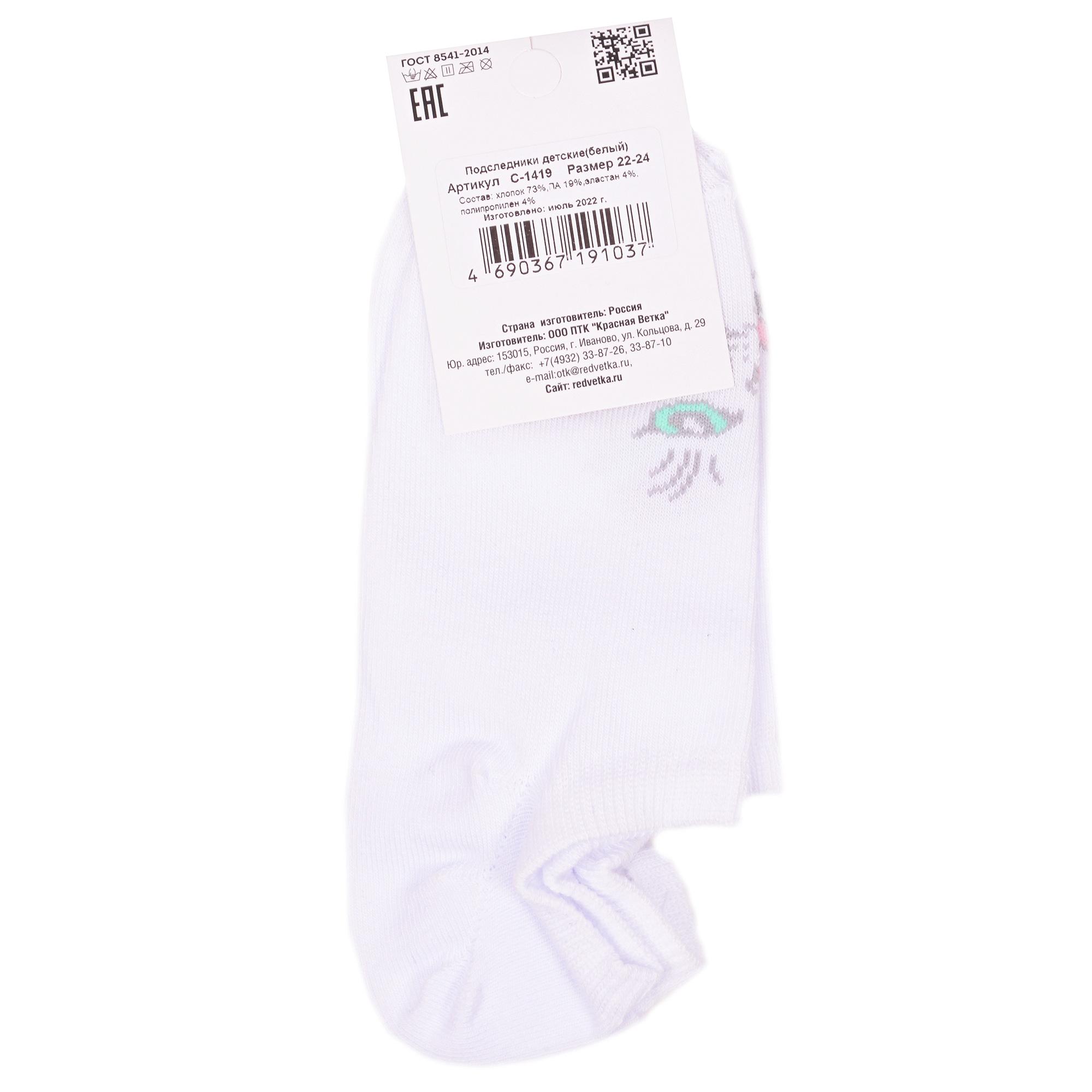 Летние ультракороткие детские носки, цвет белый, повседневные, шов обычный (не бесшовные), принт (рисунок): животные, с узором, состав: 73% хлопок, 19% полиамид, 4% эластан, 4% полипропилен, арт. ПС-1419. Производитель «КРАСНАЯ ВЕТКА» Россия под брендом «Красная ветка».