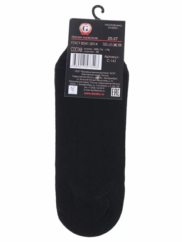 Летние подследники унисекс, цвет черный, классические, состав: 80% хлопок, 17% полиамид, 3% эластан, арт. С-161. Производитель «ООО Производственная компания "ДСМ", Россия» под брендом «Grand line».