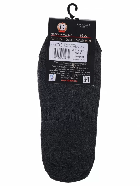 Летние подследники унисекс, цвет темно-серый, классические, состав: 80% хлопок, 17% полиамид, 3% эластан, арт. С-161. Производитель «ООО Производственная компания "ДСМ", Россия» под брендом «Grand line».