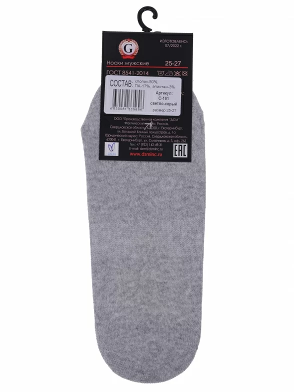 Летние подследники унисекс, цвет светло-серый, классические, состав: 80% хлопок, 17% полиамид, 3% эластан, арт. С-161. Производитель «ООО Производственная компания "ДСМ", Россия» под брендом «Grand line».