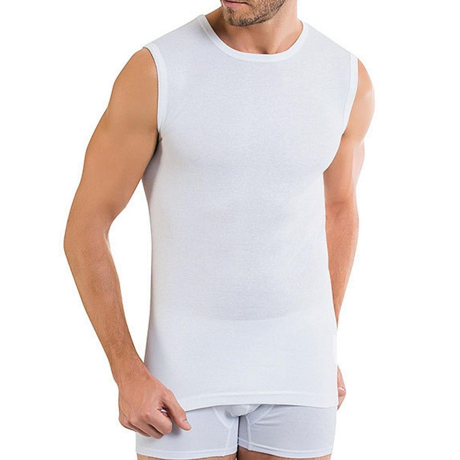 Мужская хлопковая майка с широкими бретелями сделана из мягкого хлопка. Модель от турецкого производителя Oztas дополнена круглым вырезом горловины.