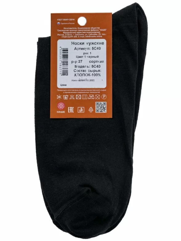 Мужские носки из 100% хлопка "НАШЕ" Смоленской чулочной фабрики, 5С40, рис. 1, ЧЕРНЫЕ №1