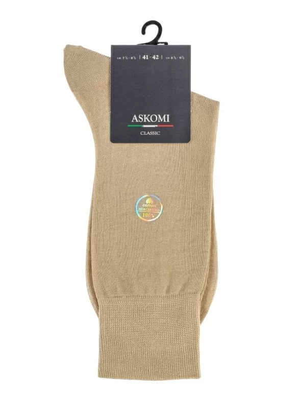 Мужские носки из 100% мерсеризованного хлопка ASKOMI, АМ-7100, БЕЖЕВЫЕ