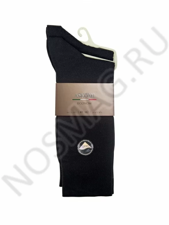 Мужские носки, цвет черный, классические, шов кеттельный (бесшовная технология), состав: 80% хлопок, 18% полиамид, 2% лайкра, арт. АМ-3000. Производитель «ASKOMI» Россия под брендом «Askomi».