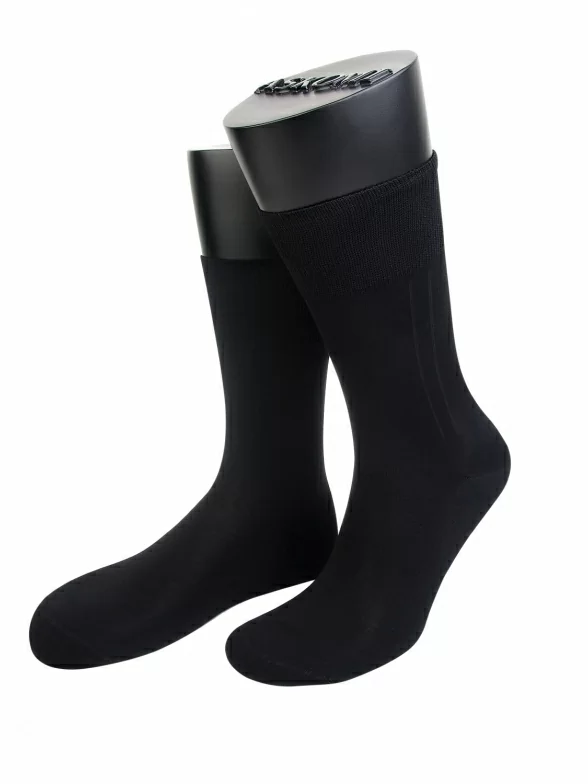 Мужские носки классической длины, на 100% изготовленные из мерсеризованного хлопка. Данный вид хлопка придает носкам повышенную износостойкость и очень приятную гладкую фактуру. Кроме того, модель примечательна комфортной резинкой.