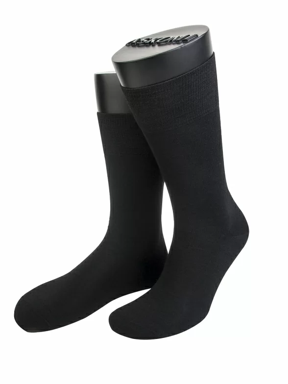 Мужские хлопковые носки средней длины. Узор - вертикальные полоски. В основе - мерсеризованный хлопок. Изделия мягкие, гладкие, повышенной износостойкости.