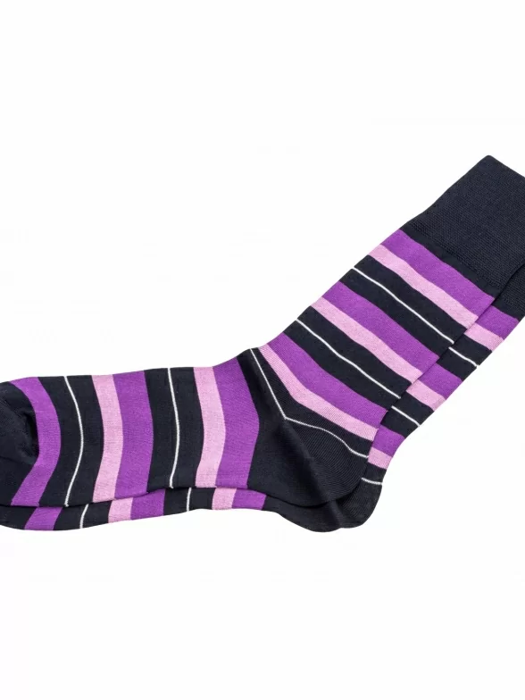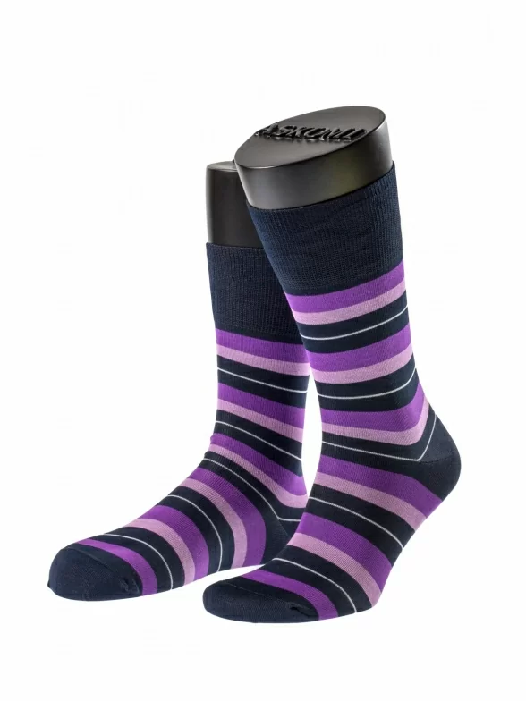 Яркие мужские носки классической длины, оформленные контрастными разноцветными полосками. Модель изготовлена из качественного трикотажа на основе премиального мерсеризованного хлопка и отличается особой гладкой фактурой, а также высокой износостойкостью. Высокая резинка распределяет давление и снижает нагрузку на сосуды.