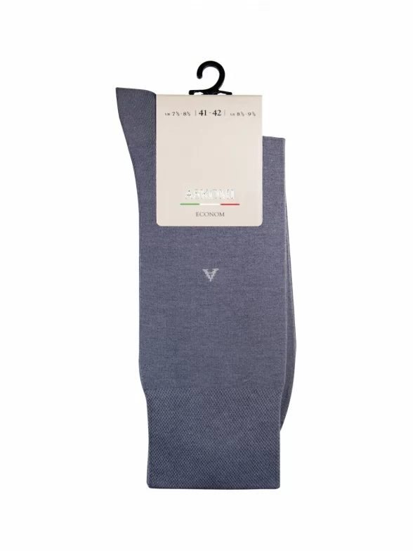 Темно-серые мужские носки из мерсеризованного хлопка ASKOMI. Изготовлены на известной российской фабрике ХОХ с использованием современного оборудования и качественного сырья. Носки мягкие, эластичные, плотные. При этом они тонкие и износостойкие. После многочисленных стирок не покрываются катышками, не теряют форму и яркость цвета. Изделия эластичные и плотно прилегают к ноге, не сползают, но при этом не пережимают кожу. Отлично сочетаются с деловыми костюмами и с любой повседневной одеждой.