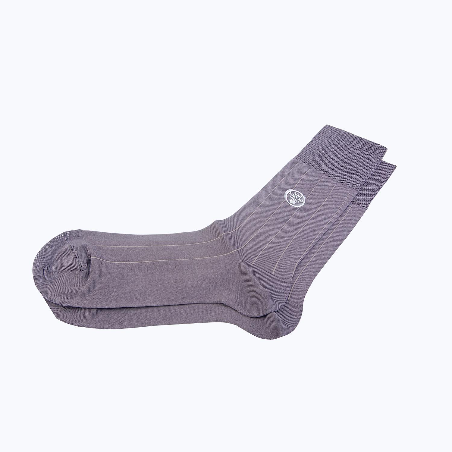 Мужские носки классической длины, оформленные тонкими контрастными вертикальными полосками. Модель изготовлена из премиального трикотажа на основе мерсеризованного хлопка, который придает носкам повышенную износостойкость и особую гладкую фактуру. Высокая резинка распределяет нагрузку на сосуды.