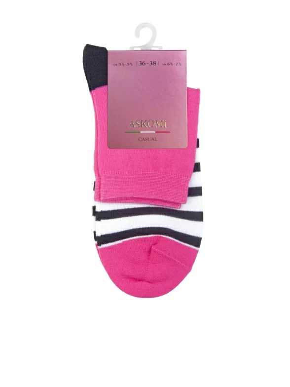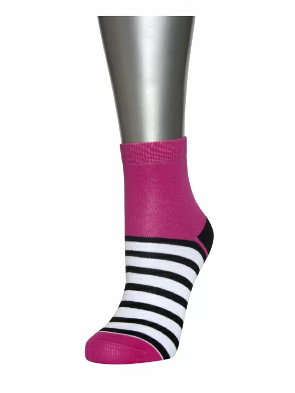 Удобные женские носки из трикотажа на основе особого хлопка Soft. Они отлично тянутся и отличаются очень приятной мягкой фактурой, за счет чего модель невероятно комфортна в носке. Контрастные детали и полоски делают носки броскими и примечательными.