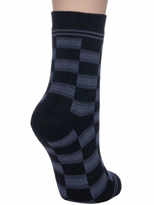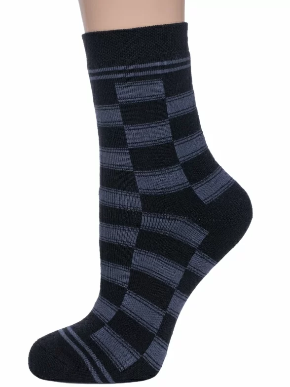 Удобные детские махровые носки. Узор в клетку смотрится оригинально и необычно. Носки сделаны из качественного приятного к телу хлопка.