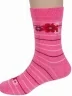 Детские носки от Брестского чулочного комбината украшены принтом в полоску и цветочным рисунком. Модель, дополненная широкой резинкой, связана из хлопка с добавлением полиамида и эластана.