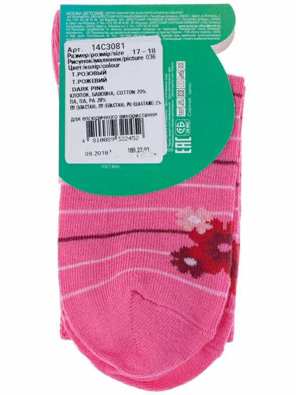 Детские носки Брестские (БЧК), 14С3081, рис. 036, ТЕМНО-РОЗОВЫЕ