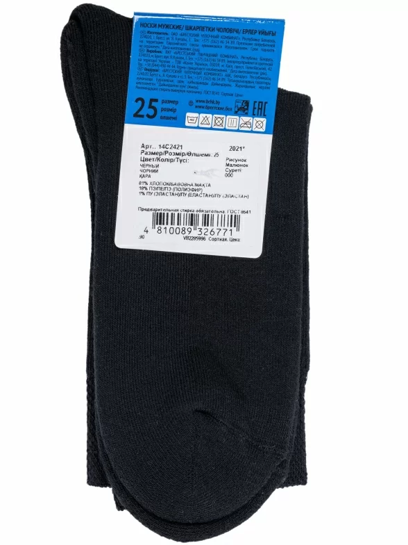 Мужские носки с махровым следом Брестские (БЧК), 14С2421, рис. 000, ЧЕРНЫЕ