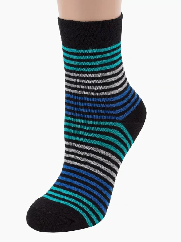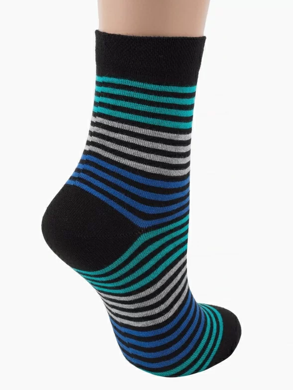 Женские носки слегка укороченного фасона. Модель оформлена контрастной яркой полоской за счет чего смотрится очень оригинально. Такие носки будут отлично сочетаться со спортивной и Casual одеждой и обувью. Модель обеспечивает оптимальную циркуляцию воздуха, а мягкая резинка не создает излишнего давления на кожу.