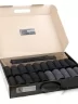 Носки свернуты аккуратными рулончиками без фабричных этикеток внутри фирменного кейса с пластиковой ручкой.