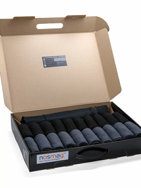 Носки свернуты аккуратными рулончиками без фабричных этикеток внутри фирменного кейса с пластиковой ручкой.