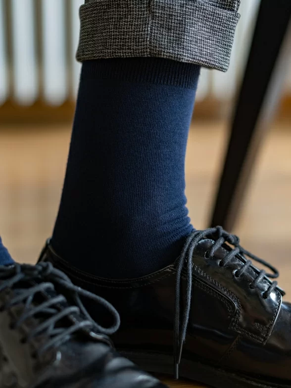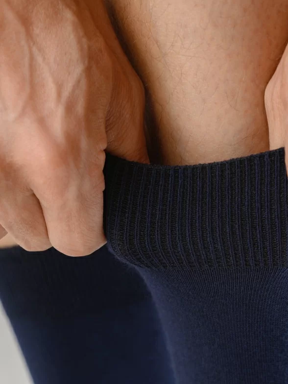 Однотонная модель средней длины с одинарным бортом (манжетом резинки) и неощутимым швом на мыске.
