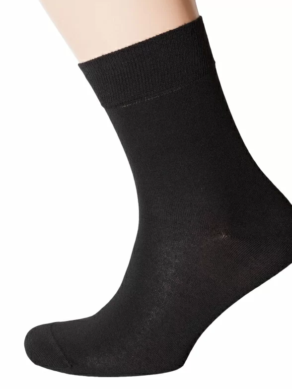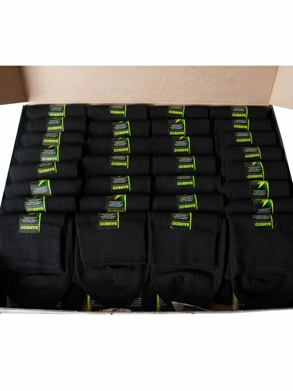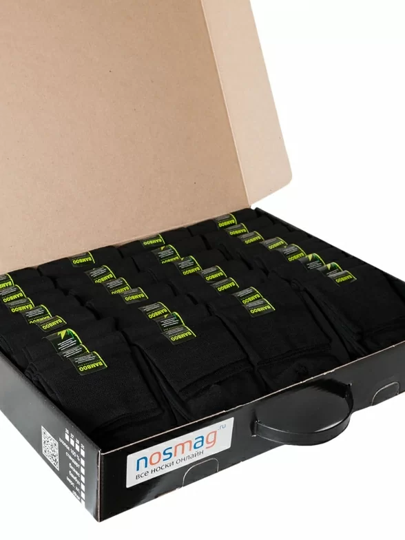Набор из 30 пар бамбуковых мужских черных носков бренда RuSocks. Носки средней длины высокой плотности вязки, двойным бортом (манжетом резинки) и неощутимым швом.
