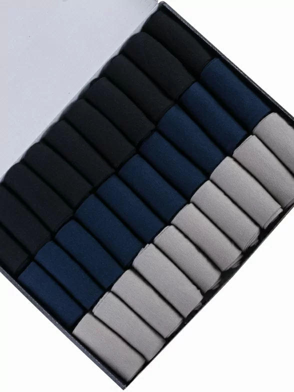 Набор с качественными носками класса "Бизнес", в котором представлена одна модель в разных расцветках, позволит иметь подходящую пару под любой костюм.