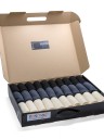 Носки свернуты аккуратными рулончиками без фабричных этикеток внутри фирменного кейса с пластиковой ручкой.